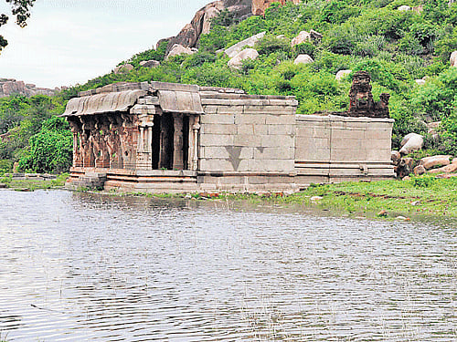 Many historical monuments at Hampi in Hospet are inundated following copious rainfall in the taluk from Thursday afternoon till midnight.