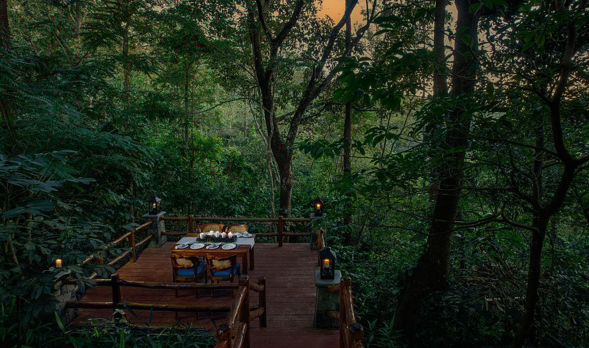 “We used the slope on one end of the plot to create a subterranean garage, providing the required space, without disturbing the lovely silhouettes of the home,” he explains. Subhash adds that since the site was located near a jungle, a machan (a platform erected on a tree for watching animals) was a must.