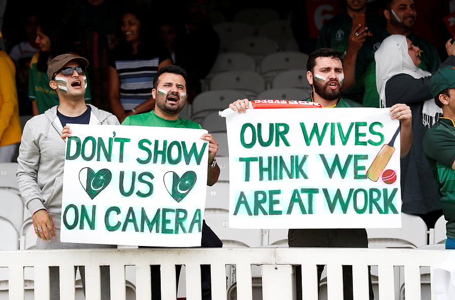 Pakistan fans display witty signs before the match. Photo credit: Reuters