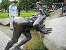 Sculptures of Germanic Gods dot the landscape beginning with the Well of Wisdom near the Town Hall, which is presided over by Wotan the Father of Gods. Horse shoe impressions on the pavement lead us through the town via sculptures of dragons, serpents and winged horses.