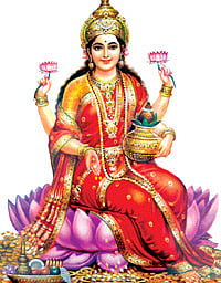 The funny thing is, neither the Devas nor the Asuras are happy. They try hard to hold on Lakshmi but she slips away. In folk tradition, Lakshmi is described as possessing a squint — one never knows where she is actually going. She is also called Chanchala, the whimsical one, eternally restless. They say one should never keep the image of Lakshmi standing in the house; she will get tired and run away. One is advised to keep images of Lakshmi comfortable seated, preferably next to Saraswati, goddess of knowledge.