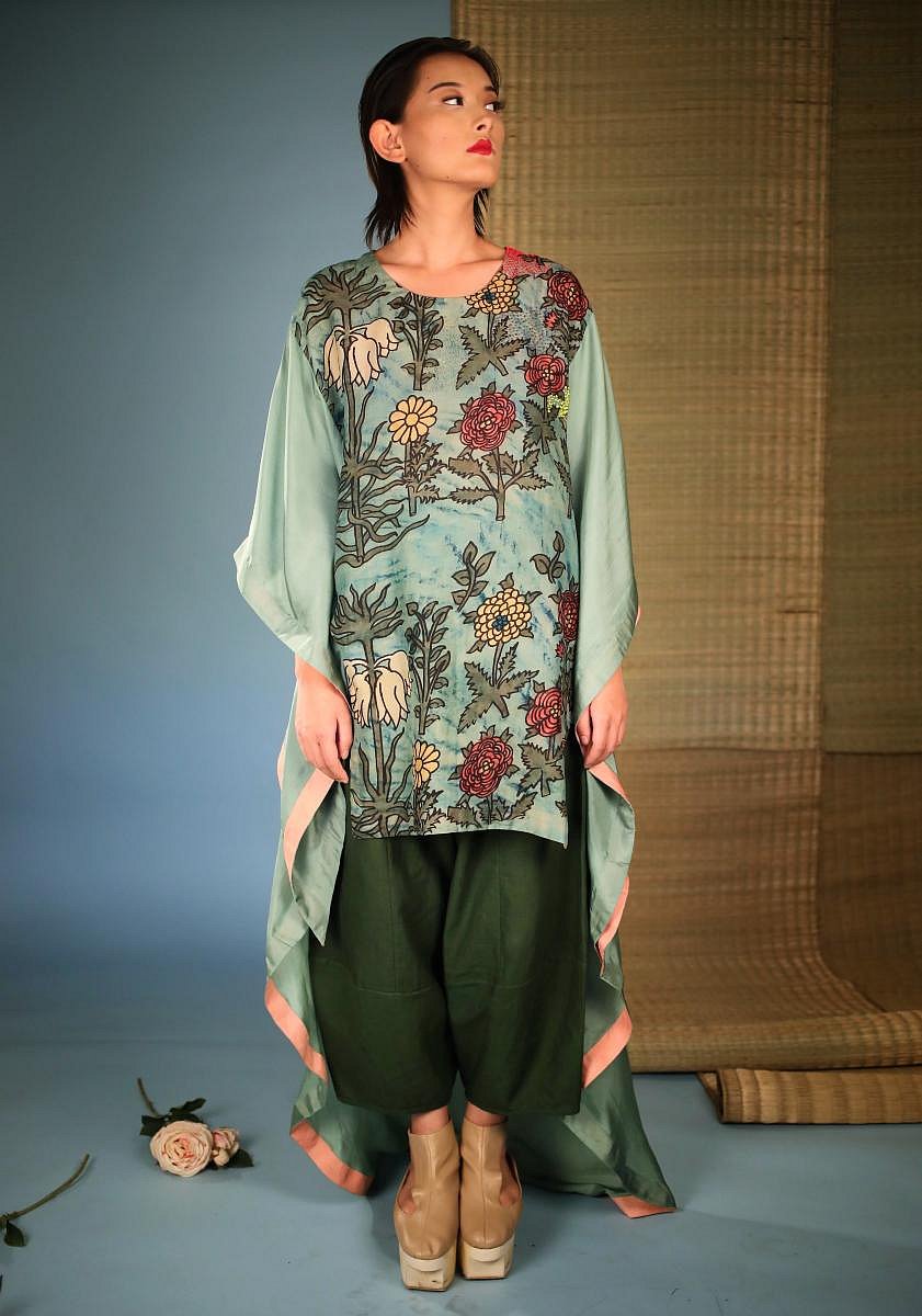 As there’s a discrepancy in colours, no two garments would ever be the same. This must be considered an advantage as each piece is a unique hand-printed design. I work with celebrated artisans, and they make sure the colours age but not fade. It’s a slow process, but beautiful. Clients are advised to either wash our products with reetha, a natural shampoo, or do the organic dry-cleaning. This helps the clients reap the health benefits of natural dyes. We specialise in silhouettes, which are form-pleasing and loved by the youth.