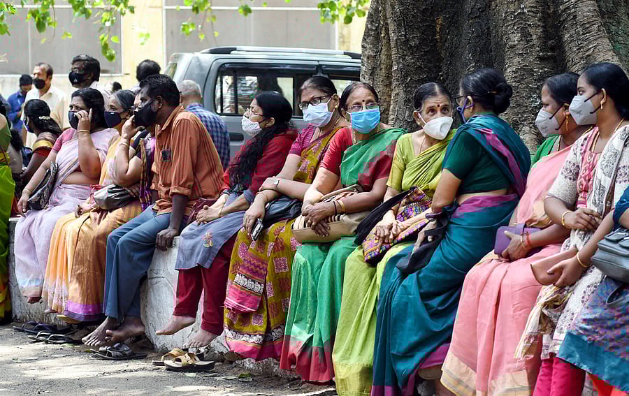People wait to be vaccinated for Covid-19 at the General Hospital, as coronavirus cases surge across the country, in Thiruvananthapuram, Thursday, April 22, 2021. Credit: PTI Photo