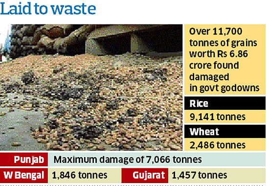 According to data submitted by Pawar, the maximum damage of 7,066 tonnes of foodgrains was reported from Punjab, followed by 1,846 tonnes from West Bengal and 1,457 tonnes from Gujarat. Of the food grains damaged, 9,141 tonnes was rice while 2,486 tonnes was wheat, and the remaining 81 tonnes was paddy.