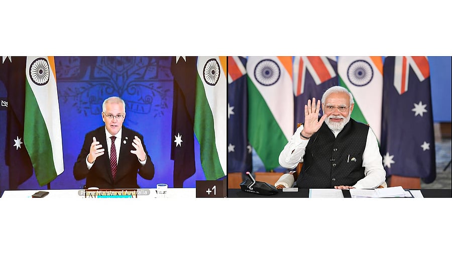 Prime Minister Narendra Modi and his Australian counterpart Scott Morrison had a virtual summit. Apart from reviewing the bilateral relations between the two nations, they exchanged views on both Russia’s military operations in Ukraine and China’s aggression against India along the Line of Actual Control between the two nations and against other countries in the Indo-Pacific region. Morrison termed Russia’s invasion of Ukraine as “unlawful” while making a statement at the beginning. Modi, however, refrained from making any comment on the issue during the open session of the summit, thus sticking to New Delhi’s persistent policy of avoiding any direct criticism of Russia, in view of the long-standing strategic partnership between the two nations.