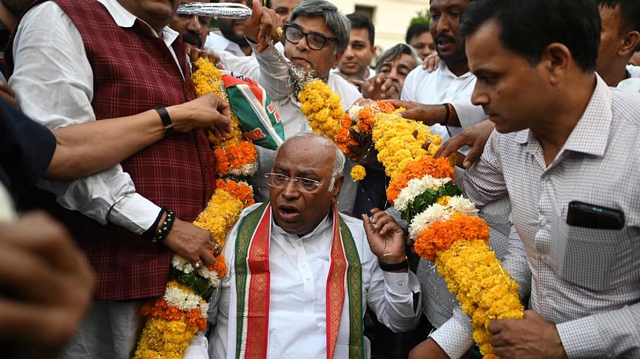 Hectic preparations were underway at the Congress headquarters for the ceremony where party president Sonia Gandhi will hand over the baton to her successor, Mallikarjun Kharge, the first non-Gandhi to head the outfit in 24 years.(PTI)