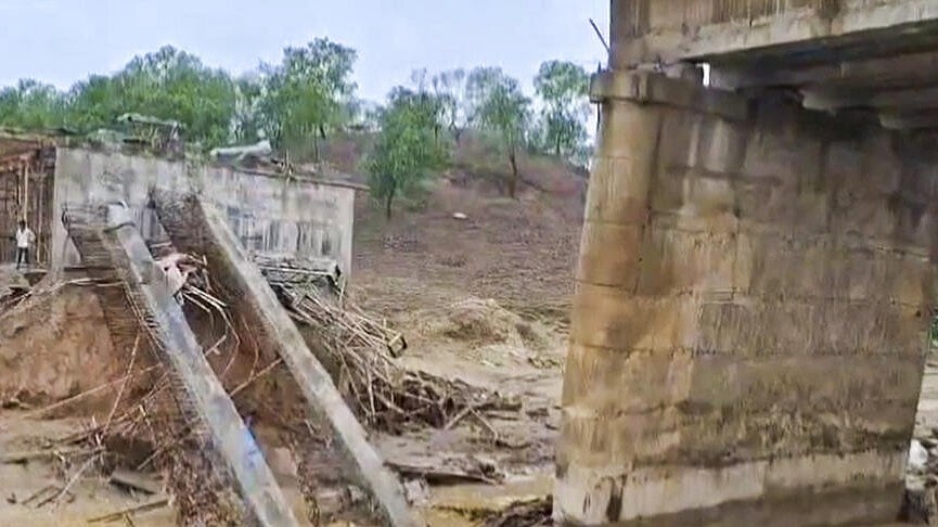 The bridge, built in 2007 at a cost of Rs 1.30 crore connecting Ranchi-Khunti-Simdega road near Pelol village, collapsed on one side after a pillar supporting the approach road tilted during heavy rains on June 19.