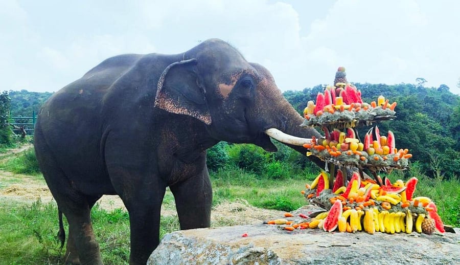 A 20-year-old male elephant was treated to seasonal enrichment to mark the completion of its four-month-long musth period at the Bannerghatta Biological Park here on Thursday.