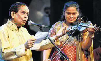 Organised by Sparsh Foundation in aid of SparshVachana, the charity wing of Sparsh Hospitals, the event brought together veteran vocalist and composer Balamuralikrishna and talented violinist Jyotsna Srikanth on one platform for the first time