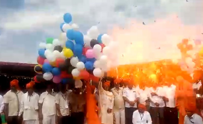 At least four people, including Suttur mutt seer and MLC Marithibbegowda, have been injured in a blast from hydrogen balloons.
