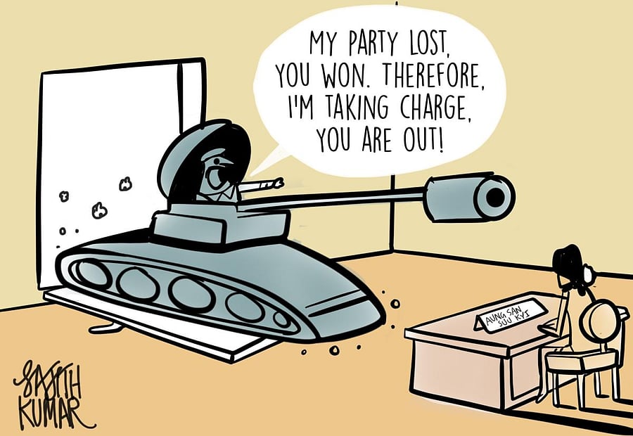 Smaller, minority ethnic parties won a total of 47 seats. In fact, even prior to the declaration of the results, the military, along with the USDP, began their campaign to delegitimise the elections, citing irregularities in voter lists and “widespread violation of laws and procedures.” What’s pertinent to note is that the Tatmadaw and the USDP have provided little to no evidence to back their claims. The Union Election Commission (UEC) and other international watchdogs have maintained that the elections were credible and transparent. The Myanmar military’s campaign against the country’s elections ran parallel to Donald Trump’s campaign to delegitimise the US election results. In the US, the institutions of democracy stood up to the challenge; in Myanmar, the military easily overwhelmed them.