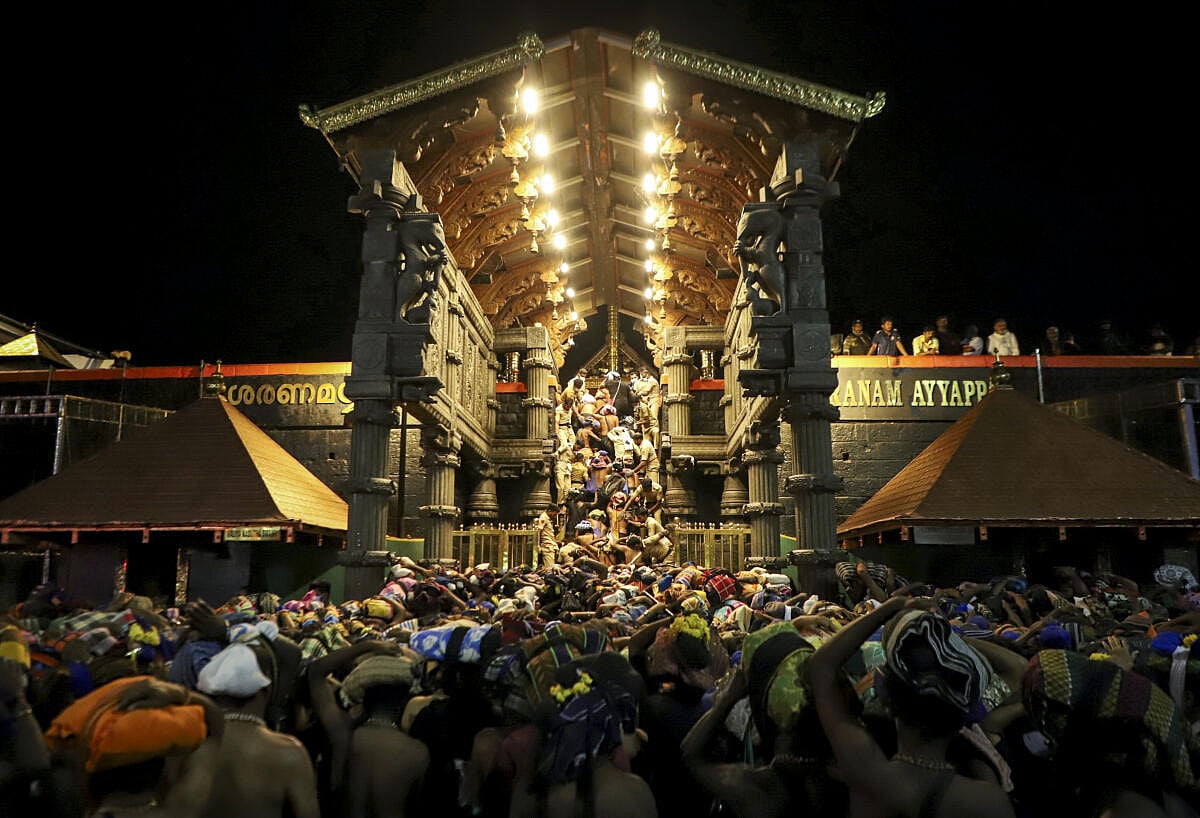 Devotees with 'irumudi', a bag carried on head during pilgrimage to Sabarimala temple, in Pathanamthitta, Kerala. PTI