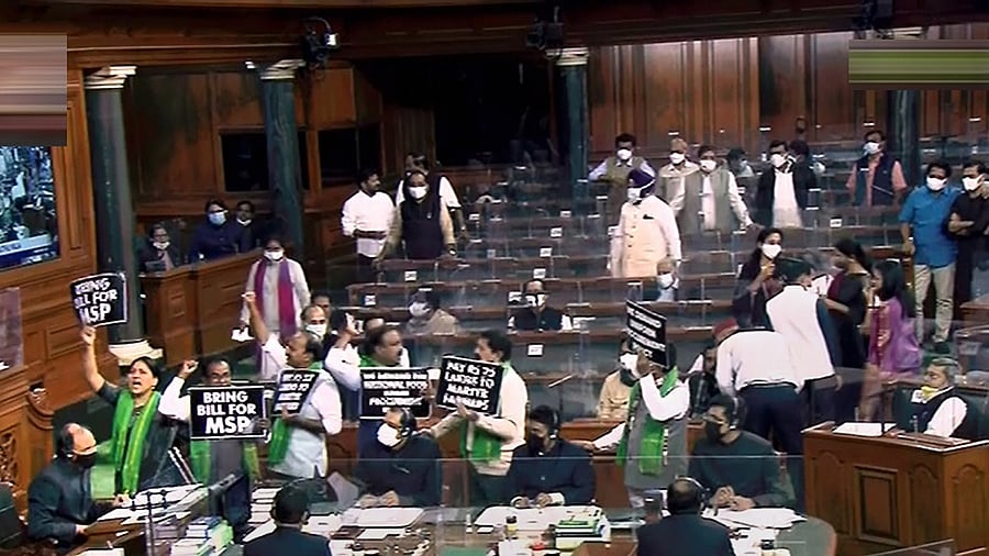 On the first day of the Winter Session on Monday, Parliament passed The Farm Laws Repeal Bill, 2021, to cancel the three agri laws, with Lok Sabha and Rajya Sabha approving it without any debate within minutes of taking it up amid protests by opposition members who were demanding a discussion.