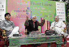 He was accompanied by two other eminent lyricists, Javed Akhtar and Prasoon Joshi, for the session “Geet Gaata Chal.” And it was not often that the trio agreed on one topic, much to the delight of the audience.