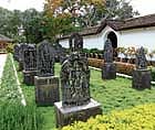 Both these areas and the garden at the entrance contain sculptures recovered from the Hoysala, Chalukya periods, etc. They include figures of Ganesha, Narasimha, Mahishasuramardhini, Surya or the Sun God, Gajalakshmi, Vishnu in various poses, etc. There are antiques recovered from the Tavanandi fort, Baruru, Somapura, Saluru, Basavapatna, Kalkere, Annavati Forest, Gurupura, Balligave, Choradi Forest, etc. The idols of Ugra Narasimha, Jade Ganapathi, Yoganarayana (Mahavishnu in a yogic meditation posture), Durga and Anantasayana (Mahavishnu in a reclining pose) were among the most impressive.