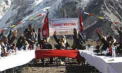 The unique meeting of Nepalese government comes after the Maldives cabinet met underwater in October to symbolically flag the threat of global warming ahead of the crucial Copenhagen Summit.