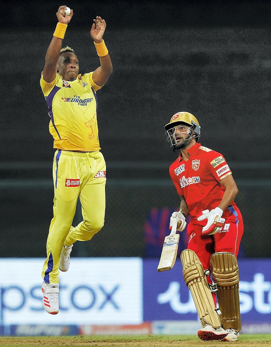 9.2Bravo to Dhawan, 1 run, length ball outside off, slow, pushed to extra cover