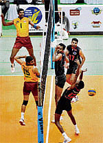 Results: Hyderabad Chargers bt Karnataka Bulls 3-1 (29-27, 30-28, 25-23, 25-16); Yanam Tigers bt Kerala Killers 3-0 (25-17, 25-19, 25-15); Chennai Spikers bt Maratha Warriors 3-0 (25-22, 25-13, 25-18).