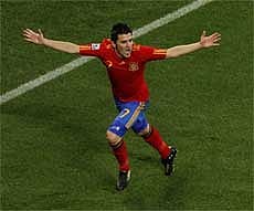 The Barcelona-bound striker saw his first shot blocked by Portugal goalkeeper Eduardo, but on the rebound, he coolly slotted home with his right foot.Portugal's only defensive weakness had been on its right flank, where Ricardo Costa struggled. He was sent off for elbowing Joan Capdevila in the 89th minute, stifling a late Portuguese drive.Spain will now play Paraguay in the quarterfinals on Saturday at Ellis Park.