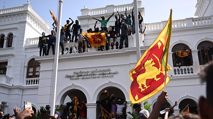 Protesters in Sri Lanka defied tear gas, water cannon and a state of emergency to storm the prime minister's office on Wednesday after the president fled overseas, with the crowd demanding both men step down in the face of an economic crisis.
