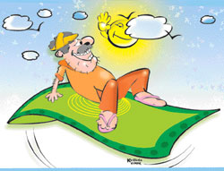 <p>They were very proud of the new clothes and chikan embroidery they were wearing. Mehrunnisa’s kurta was deep pink and Kehrunnisa’s, pale green. Their father Ashok was a mat maker. But for some reason not many people bought carpets from him. <br /><br />He had counted. Only ten or eleven people had bought his carpets. Suddenly, one day, his wife Nisha’s mother was ill. The bad part was that she was out of station. <br /><br />So poor Ashok had no choice but to send his wife and children to their grandmother. And so he did. But it cost him all the money he had. After they said their farewells and were off, it got worse. <br /><br />Not one person would even come near the shop even though Ashok spent all his time making beautiful carpets.<br /><br />One night, he had made a mistake in one of the carpets. But it wasn’t bad. It just looked like an old dial. So he said to himself, “I will keep this carpet because it looks a little shabbier than the others. Nobody is buying my carpets anyway.” And so he kept the carpet. <br /><br />One night, he fell off his bed and noticed it was morning. He lay flat on his carpet. He saw the old dial-like shape and ran his finger around it seven times. Then the carpet started vibrating. Ashok thought it was a dream and shut his eyes. When he opened them, he was soaring high in the sky on his carpet.<br /><br />He had a brilliant idea. If he made carpets with dials on them, they would fly! And somehow he managed to steer the carpet back home and noticed his family would arrive in an hour’s time. As soon as they got back home, he told them the whole story and taught them how to make carpets. Soon they were a rich family and lived happily ever after.<br /></p>