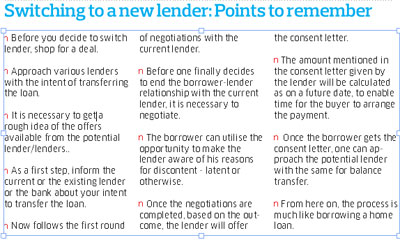 <p>Contemplating transferring your home loan? Not a bad idea particularly if you as a home loan borrower are burdened by increased interest rates and EMIs.<br /><br />It’s high time that you start looking at interest rates offered by other lenders, and for this you can take help of price and features comparison engines specialising in loans to get the complete picture in one go.<br /><br />Once you have the rates before you, you can shortlist lenders whom you would like to approach. <br /><br />But there is a process involved and costs too. You have to bear in mind, the financial as well documentation aspects, before deciding on making the switch. Though prepayment entails penalty besides lump sum funds, switching to a lender who offers better rates looks like a feasible option. Also known as Balance Transfer (BT), the process here is very similar to that of home loans. <br /><br />Two aspects associated with BT are prepayment penalty and processing fee. Lending is the business of the bank and the interest on the loan, one of its major sources of income. This is one of the major reasons why a bank would charge a customer if he desires to switch lenders. This charge is known as prepayment penalty, the definition varying from bank to bank. Normally, a bank charges up to two per cent of the total loan outstanding as a prepayment penalty. <br /><br />Just as there is a cost to pay for a transfer, the new lender will also charge a processing fee to take over the loan. It can be about 0.50 per cent to one per cent of the total loan amount one applies for. It is necessary to check the probable terms and conditions relating to the loan transfer charges to be borne by the applicant.<br /><br />Why switch lenders? <br />By now, we have established that banking, like any other industry is a business and that lending is a revenue generating activity, not based on philanthropy or good-will. This raises questions like: Why do we switch lenders? Will it make a difference? Will all be not the same? <br /><br />Yes, it will make a difference. <br /><br />The basic premise of taking such a step is to avail of benefits by way of lower interest rates on loans. Banks are known to offer lower interest rates to new loan consumers, rather than the existing ones. <br /><br />Let’s take an example. Say ‘A’ borrowed a loan at an interest rate of 8.50 per cent in 2007 - 2008 from lender ‘X’ for a 20-year tenure. The interest rates have increased on the loan since then and currently, s/he is paying an interest rate of 13 per cent. <br /><br />Another consumer, say ‘B’ approaches ‘X’ for a loan and gets an interest rate of 11.50 per cent as a new customer. Naturally this causes heart burn with existing customer and he would like to switch loan which some other lender will offer him as he will be treated as new customer there. <br /><br />The option available for ‘A’ to transfer his loan to another bank ‘Y’ if the interest rate offered is lower than the one ‘A’ is paying currently. <br /><br />So, in a nutshell, it makes sense to transfer the loan to another bank only if the gain (in terms of interest range) is to the tune of one per cent or more. <br /><br />Before you decide to switch lender, shop for a deal. Approach various lenders with the intent of transferring the loan. The success of the deal or its failure it will depend on the income of the applicant and the repayment track record. It is necessary to get a rough idea of the offers available from the potential lender/lenders. <br /><br />As a first step, inform the current or the existing lender or the bank about your intent to transfer the loan. This can be done by submitting a letter to them. The intent is to be communicated in writing to them. <br /><br />Now follows the first round of negotiations with the current lender. Before one finally decides to end the borrower-lender relationship with the current lender, it is necessary to negotiate. <br /><br />The borrower can utilise the opportunity to make the lender aware of his reasons for discontent - latent or otherwise. Once the negotiations are completed, based on the outcome, the lender will offer the consent letter. This simply means that the existing lender has given his go-ahead to the transfer process. This letter will mention details of the loan like the total loan amount borrowed, the loan amount outstanding as well as the prepayment charges, if any. <br /><br />The amount mentioned will be calculated as on a future date, to enable time for the buyer to arrange the payment. Once the borrower gets the consent letter, one can approach the potential lender with the same for balance transfer. <br /><br />The process<br />From here on, the process is much like borrowing a home loan. The applicant has to fill in an application form with the requisite details, followed by a personal discussion. It is necessary to have all the original documents pertaining to the information provided on the application form for the personal discussion. Discussion is followed by field investigation and valuation of the property. <br /><br />After credit appraisal, the current lender will disburse the loan. But remember, the current lender will require all the original documents relating to the property and other documents such as NOCs from the relevant regulatory bodies before the loan is disbursed. <br /><br />Normally, the existing lender will not release the property documents before the loan is prepaid. Similarly, the new lender may not be ready to disburse the loan before receiving the original papers. <br /><br />One can obtain a letter from the current lender giving details of the legal papers held by them as security against the home loan and indicating the number of days it will take to release the documents to the borrower/applicant, once the payment is received. <br /><br />If one has photocopies of the documents held by the existing lender, it will be of help when applying for a 