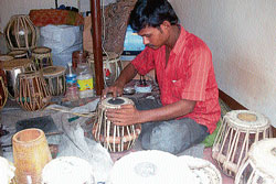 <p>On a similar note, a stroll around the narrow roads of Car Street will lead to a small shop where one can find a group of men busily engrossed in preparing music instruments especially during the peak of festive seasons.<br /><br />Bombay Harmonium Works at Car Street is one of those places in Mangalore which still enlivens the good old days of Mangalore when handmade music instruments were on the height of popularity. With the changing time and lifestyle, the shop which was once frequently visited by musicians, has lost its glory, but yet is functioning on a small scale to meet the demands of few regular customers who pay visit once in a while.<br /><br />Bombay Harmonium Works that was started 50 years ago by Kotiyan family is now being looked after by the two family members, Navin Kotiyan and Anand Kotiyan. <br /><br />Speaking to City Herald, one of the skilled instrument makers Anand Kotiyan explained about the making of harmonium and the existing demand quotient for harmonium makers. “We prepare harmoniums mostly using teakwood which is considered quite costlier. Basically, there are two types of harmoniums, i.e., single and double sized. A ‘single’ harmonium costs around Rs 3,200 while the ‘double’ harmonium costs Rs 8,000. Unfortunately with the passing time, there is a decreased demand for handmade harmoniums and so we don’t have handful of work now,” he says. <br /><br />It takes almost 20 days to prepare a completely furnished harmonium. Anand Kotiyan believes it is for the same reason that people avoid purchasing music instruments directly from the makers. “Most of the instrument buyers feel that 20 days is too long for them to wait, but then there are few regular customers like Bhajana mandalis, elderly tutors like Ram Bhat, Nagesh Pai and Shrikanth who make it a point to purchase harmonium for them and their students from here,” he informs. <br /><br />Tabla makers<br /><br />In spite of having the name Bombay Harmonium Works, the shop is not restricted itself to harmonium manufacturing, but also it produces tabla, dakke and band. A group of three young men from Nalagunda of Hubli are employees of the shop, and these trained youth have engaged themselves in preparing tabla and other instruments since two years.<br />Talking about the making of tabla, one of the makers Durgappa informed that it takes a whole day for him to prepare a tabla. “We bring required wooden material from Sangli in Maharashtra, while leather is purchased from Sholapur. Making of tabla or dakke requires a whole lot of patience as it is an intricate job to perform. No matter what, we forget all the work fatigue when the instrument gets ready,” he says. <br /><br />In the shop, though they prepare instruments based on the orders, they have also made it mandatory to produce extra amount of instruments to meet the unexpected demands. <br />The demand for instruments is limited to the festival season from Krishnashtami to Dasara. With the end of Dasara, the tabla makers pack up their luggage and travel back to their village for a 6 months holiday. <br /><br />As far as harmonium business is concerned, Kotiyan family spends their next six months by repairing harmoniums and working on the limited set of orders.</p>