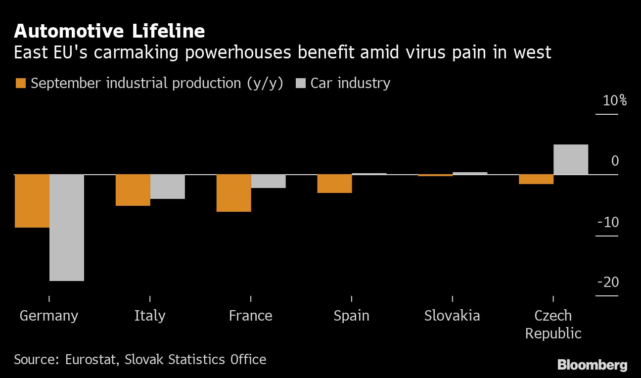 <p><em><strong>By Radoslav Tomek and Peter Laca</strong></em></p>.<article><p>Chinese appetite for high-end cars is proving a boon for eastern European economies that had earlier fretted about an over-reliance on auto plants.</p><p>Slovakia and the Czech Republic, which make the most cars in the world per capita, have closed shops and bars to tame the second wave of Covid-19 infections engulfing Europe. Their factories, however, continue to churn out luxury vehicles including Porsche Cayenne SUVs for Asia and the US, as well as an array of lower-cost models from the likes of Peugeot and Skoda for customers closer to home on tighter budgets amid the pandemic.</p><p>Jaguar Land Rover Automotive Plc, which opened a factory in western Slovakia two years ago, saw a “remarkable” third-quarter improvement in demand, with “China sales particularly encouraging,” according to Russel Leslie, director of the plant that makes Discovery and Defender SUVs and was closed for almost two months earlier this year.</p> </article>.<article> <p>“China, the US and the UK are very big markets for us,” Leslie said in an interview. “We continue to see good trends there.”</p><p>Volkswagen AG, meanwhile, is committing more than 1 billion euros ($1.2 billion) of additional investments in the two countries, which succeeded in restarting production quicker than their western neighbors after the virus’s initial blow.</p><p>Automotive investment has helped transform the former Eastern Bloc. Lured by a cheap but skilled workforce and proximity to major European markets, large producers that also include Hyundai Motor Co. and Kia Motors Corp. have built state-of-the-art assembly lines across the region, which is also home to a web of component makers.</p><p>But it’s Slovakia and the Czech Republic that stand out. The auto sector generates about half of industrial output in the former country and roughly a quarter of output in the latter. That’s more than in Germany or France and accounts for countless livelihoods.</p><p>Such dependence has raised eyebrows. Naysayers including politicians and economists argue that the narrow focus leaves the countries vulnerable to swings in global demand, as well as supply-chain disruptions of the kind seen when the pandemic first struck. Another risk is the shift to electric vehicles, which will ultimately eliminate a chunk of Czech and Slovak output tied to internal combustion engines.</p><p>But, facing the deepest recessions since communism collapsed three decades ago, the two countries got production back online rapidly after the spring lockdown, and are maintaining it now. Both economies outperformed analyst estimates last quarter.</p><p>“The often-criticized manufacturing focus of the Czech economy can be now, like in the first pandemic wave, an advantage,” said Martin Gurtler, an economist at Komercni Banka AS.</p><p>With the combined population of 16 million people, the pair’s fortunes are fused to customers beyond their borders. Last year, 85% of the Czech auto industry’s total 1.1 trillion koruna ($49 billion) of sales came from exports. The share is even bigger in Slovakia, which makes twice as many cars as Italy, whose population is 10 times bigger and which boasts a much longer automotive tradition.</p><p>Data released just last week showed car sales in China gained for a fourth month in October, adding to optimism that a slump that lasted two years and deepened amid Covid-19 is over. Retail sales of cars, SUVs and multiple-purpose vehicles increased 8% from a year earlier to 2.02 million units, according to the China Passenger Car Association.</p><p>Despite the tectonic changes ahead for the industry, the countries can continue to provide a manufacturing base after the pandemic has been tamed, according to Jaguar Land Rover’s Leslie.</p><p>“It’s a good thing that Slovakia’s able to attract future investment,” he said. “The automotive industry is moving at the fastest pace I’ve seen in 27 years in the business -- moving into connectivity, automation, shared mobility, and this brings good opportunity.”</p></article>
