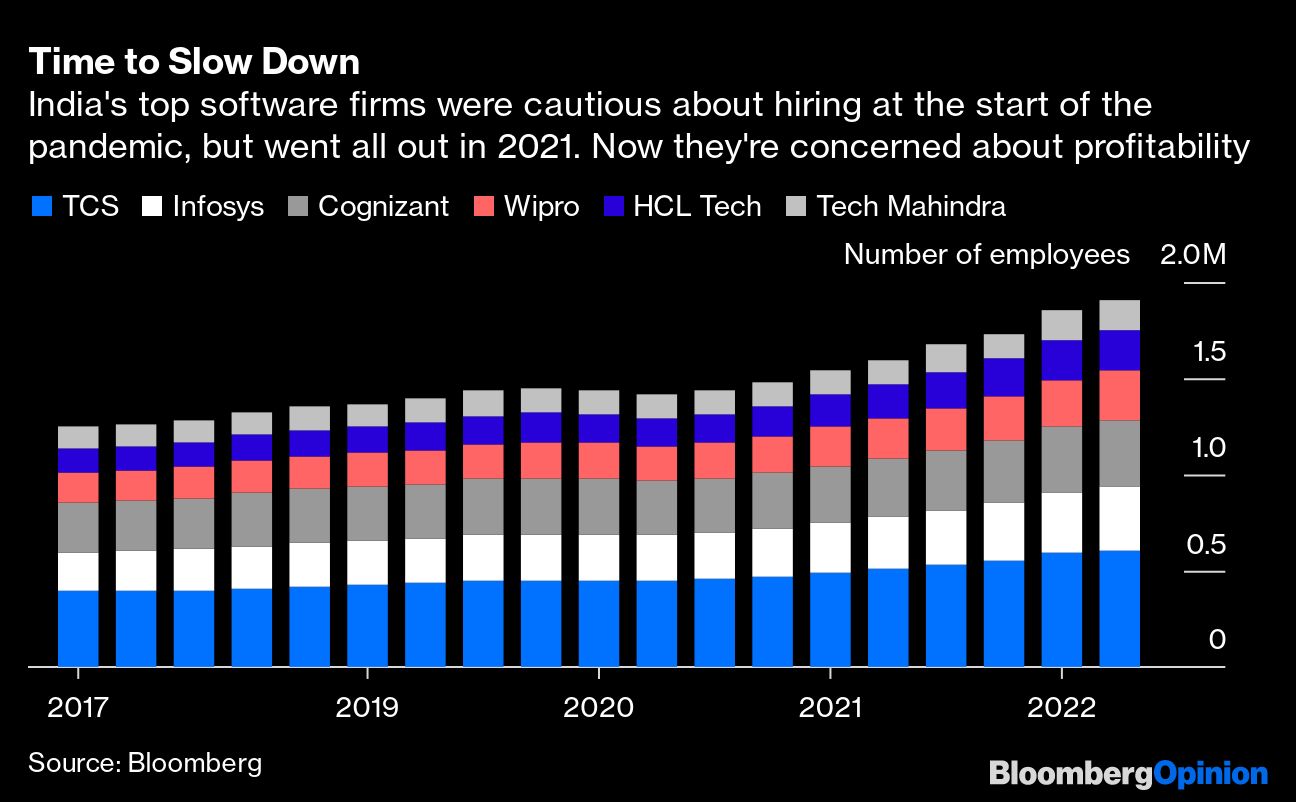 <p><em><strong>By Andy Mukherjee</strong></em></p>.<p>The quarterly earnings season for India’s outsourcing firms has begun on a cautiously optimistic note. Tata Consultancy Services Ltd., the largest of the country’s software exporters, reported better-than-expected growth of 8 per cent in net income. Its operating margin, which had slumped to a seven-year low of 23 per cent in the three months to June, rose by 1 percentage point as Mumbai-based TCS dialed down on new hiring. </p>.<p>From here on, however, things may get challenging. European clients, which typically account for a quarter to a third of Indian firms’ sales, are almost certain to cut their tech budgets — at least until the war in Ukraine comes to an end and energy supplies normalize. The more important US market may also disappoint as the Federal Reserve slows the economy to tame inflation.</p>.<p>Some American companies might still look to information technology to shed costs as they hunker down for a recession. That means new outsourcing orders. However, the pandemic-era splurge on IT is now in the rearview mirror for Indian vendors. The coders they could hire easily during Covid-19 lockdowns are getting restless with a lack of career progression since the reopening of the global economy. TCS’s attrition rate last quarter was more than 21 per cent. </p>.<p>All these are transient problems for an industry that came into its own at the start of the millennium — the Y2K bug put India on the world map of tech services. Two decades later, the publicly traded Indian software exporters garner more than $100 billion in revenue, employ 2 million people and have a market capitalization of nearly $350 billion. TCS alone is more valuable than International Business Machines Corp.</p>.<p>But size has come at the expense of agility. The outsourcing industry is all about helping global companies reduce friction at work, something that consulting firms have been doing better of <strong>late.</strong></p>.<p>Managed tightly from headquarters in Mumbai or Bengaluru, Indian IT firms still have a strong labor-cost advantage when it comes to large-scale enterprise software. The locus of demand, however, is moving away from implementing technologies from SAP SE or Oracle Corp. at clients’ premises. Demand for cloud-based workflow automation has seen ServiceNow Inc.’s revenue surge sixfold since 2015, while sales at the San Francisco-based Atlassian Corp. have bulked up eightfold thanks to Jira, a cloud-based application for tracking projects.</p>.<p>The rapidly growing German startup Celonis SE, a pioneer in so-called process mining, claims to help customers “fix inefficiencies they can’t see.” Salesforce Inc., which owns the business productivity tool Slack, had a third of SAP’s revenue in 2017. Now it’s just 12 per cent smaller. Shopify Inc. commanded a 19 per cent share last year in digital-commerce software, against Oracle’s 6 per cent, according to Bloomberg Intelligence.</p>.<p>In implementing new-age IT platforms, the Indian outsourcing players are lagging way behind the likes of Accenture Plc and Deloitte Consulting.</p>.<p>In 2015, Accenture acquired Cloud Sherpas, a small outfit of 1,100 employees of which 500 were Salesforce implementation consultants. Seven years later, cloud is a $26 billion business for Accenture, growing at 48 per cent annually. Indian outsourcing firms have also ramped up cloud-based offerings, but they’re struggling to build scale in popular new technologies like the human-resource management system offered by Workday Inc.</p>.<p>Tech is now a big part of what consulting firms do. Which is why they’re getting into the nuts and bolts of their clients’ operations — or at least boosting their capability<strong> </strong>to do so. McKinsey & Co., which in recent years has acquired more than 20 tech-related companies, hired Jacky Wright, previously Microsoft Corp.’s chief digital officer, as its first-ever chief technology and platform officer last month. Deloitte is aggressively recruiting coders and investing in training them on new <strong>technologies.</strong></p>.<p>As the dividing line between business and tech blurs at global corporations, Indian software vendors risk falling further behind their consulting rivals. Outsourcing companies are comfortable talking to the in-house tech czars at large corporate clients. But when it comes to deciding priorities, functional heads are increasingly calling the shots. And they don’t speak the language of tech. A related trend is the rise of citizen developers — non-IT professionals coming up with automation applications for their teams using so-called low-code platforms such as Appian.</p>.<p>Mind you, Salesforce and Workday implementation may not offer a ticket out of a global recession next year: The new IT players are also worried about demand. But at least they’re more plugged into the future of work — flexible, digital and often remote — than their traditional enterprise-software rivals. Top-tier Indian outsourcing firms should by now have built billion-dollar franchises around implementing the newer platforms. To get back into the game, they will need meaty acquisitions and a hard look at the state of work in their own firms, starting with freshers’ pay that has been stuck for nearly two decades at around 350,000 rupees ($4,250) a year. </p>.<p>The Mint reported last week that entry-level positions in the Indian IT industry may be slashed by 20 per cent in the financial year that will start next April. That might give the outsourcing firms a little breather on profit margins. But too much focus on the current slowdown may be unhealthy. It’s the future they need to confront — and make bold bets on. </p>