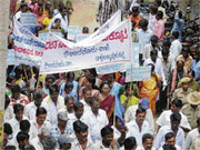 <p>Chennappa, leader of the Dalit organisations leading the protest said, politicians belonging to the upper caste with the help of the police have been suppressing those belonging to the downtrodden castes politically.<br /><br />Ramanjinamma’s political opponents attacked her when she was heading towards Gauribidanur along with her husband. This incident can be viewed against the background of Ramanjinamma’s victory in the elections of the Gundlukothuru village’s Milk Producers’ Cooperative Organisation.<br /><br />The local police have failed in initiating action against those responsible for attacking Ramanjinamma, the protesters observed.<br /><br />If immediate action is not taken in this regard then widespread protest will be held, the protesters warned.</p>