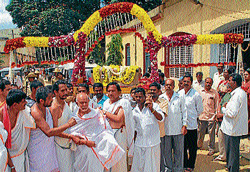 <p>The district administration and Muzrai department set the ball rolling for the rituals- that is observed as a prelude to the Hasanamba festival- when the jewellery box was kept in a specially palanquin and offered pooja before the procession began. <br /><br />The temple priests brought the specially decorated palanquin to the District Treasury around 11.30 am. <br /><br />As the jewellery box was kept on the palanquin and offered pooja, the devotees went jubilant praising the Goddess.<br /><br />The different cultural troupes added colour to the procession. The jewellery was then received at the chief priest’s house in the town. <br /><br />The deity will be decorated with the jewellery for 10-days when the Hasanamba temple is re-opened. The temple will be kept open for devotees only 10-days in a year. This time, it will be open from Oct 28. <br /><br />Thousands of devotees from all across the district and the State are expected to participate in the festivities. After the festivities, the jewellery will be safely deposited in the district treasury once again.</p>