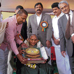 <p>B C Arvind from Handi Gram, Chikmangalur district was honoured for his success in growing coffee, pepper, betelnut, pineapple and orange in 73 acres of land, using dried leaves as fertiliser. <br /><br />Others honoured included pomegranate grower Ravishankar Hanmanthappa Udagatti of Bagalkot district and integrated farming practitioners Thammaiah of Ramanagara district and Viruppamma of Chitradurga district. <br /><br />Labour Minister B N Bachche Gowda underlined the need to popularise agriculture as a profession by ensuring competitive prices for agriculture produce. He lauded the efforts taken by the University of Agricultural Sciences in organising the Krishi Mela. “Agricultural events should be organised in at zilla and taluk level too,” he suggested. <br /><br />Observing that 50 per cent of canalised water is lost by the time it reaches farmers’ lands, Bache Gowda underlined the need for adopting drip irrigation systems which get 75 per cent subsidy from the government. Minister for Transport and Home R Ashoka was present.<br /></p>