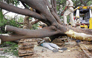 <p> The victim Sadashivaiah (68), a retired commercial tax officer was living with his wife and daughter at Mallige Garden on Magadi Road.<br /><br />The incident occurred on Wednesday at 1.30 pm, when he was on his way to a bank at MC Layout. <br /><br />The BBMP is constructing a compound for the indoor stadium at Vijayanagar for which an earth excavator has been engaged. When the digging was going on a tree fell on the road and to his misfortune, it fell on Sadashivaiah.<br /><br />The operator of the excavator is absconding. <br /><br />The police have registered cases against the driver and the contractor. <br /><br />Housing Minister V Somanna rushed to the spot and has assured a job in the BBMP to one of the family members and a compensation of Rs one lakh from the BBMP.</p>