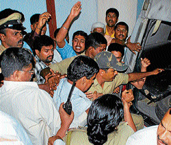 <p>This incident has taken place at the Hassan Public School. The school authorities handed over the accused teacher to the police. The angry parents assaulted him while he was being taken out of the school premises.<br /><br />According to police, the accused, Yoga Narasimha, was allegedly sexually harassing the student for sometime. Because of this, the girl student was hesitating to go to the school. Later, she complained to her parents about the ‘misbehaviour’ of the teacher. Although, the parents had brought this to the notice of the school management last Thursday, no action was initiated against the accused teacher.<br /><br />This morning, the parents came to the school and held discussion with the school management. However, the school management claimed that the school chairman, H K Javaregowda, who is also a former Rajya Sabha member, and president of the district Janata Dal (Secular) Unit, was in Bangalore. <br /><br />They said they cannot take any decision in the absence of the chairman. But the parents told the management that they would not leave the place till Javaregowda came to the school. At last, Javaregowda came to the school around 4 pm. By that time a big crowd had assembled in the school compound. Fearing attack on the teacher by the angry mob, the school authorities had locked Yoga Narasimha in a room. The school chairman, first discussed the issue with the school authorities, and then informed the police. <br /><br />Police step in <br /><br />A police jeep went near the main entrance gate from where the police took the teacher inside the vehicle amid tight security. The citizens, whose temper had reached high, assaulted Yoga Narasimha and beat him up black and blue. <br /><br />The efforts by the mob to stop the jeep near the main gate, were foiled by the police. This incident threw traffic on Salagame Road for sometime.<br /><br />The parents and others entered into a heated argument with police sub-inspectors, Banu and Vinay. Sensing trouble, Police Inspector Girijesh also came to the spot and dispersed the mob. The agitators raised slogans against the police for giving protection to the accused teacher.<br /><br />Unfortunate<br /><br />Later, talking to news persons, Javaregowda described the incident as ‘unfortunate’ and opined that such incidents should not happen in any schools. The school had appointed Yoga Narasimha since he had the work experience. “We will not keep the accused teacher in the school anymore”, he added. Hassan Town Police have registered a case.</p>