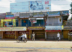 <p>Shops and commercial establishments remained closed in the town from dawn to dusk while public transport vehicles remained off the road. A holiday was declared for educational institutions as a precautionary measure while banks and government offices functioned as usual. Ex-MLC and KPCC member Shantaveerappa Gowda and 15 other Congress leaders were under pre-emptive arrest.<br /><br />Tension prevailed for some time when BJP workers gathered near bus stand in large numbers to take out a victory procession to celebrate B S Yeddyurappa’s continuation in power. Police denied permission for the procession to avoid the possible clash as Congress also had given call for bundh. Police also dispersed the BJP workers who tried to forced traders to resume the business.<br /><br />Police were deployed in a large number to avoid untoward incidents. Eastern range IGP Satyanarayana Rao, Additional SP M B Pavin supervised the security arrangements.</p>