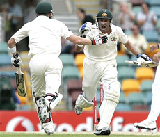 <p>Hussey registered his highest Test score of 195 and Haddin contributed 136 in a Gabba record stand of 307 runs to propel Australia to a 221-run innings lead on the third day.<br /><br /> England, who have not won a Brisbane Test since Mike Gatting's team prevailed by seven wickets in 1986, reached the close at 19 without loss with Andrew Strauss on 11 and Alastair Cook six.<br /><br /> Australia rammed home an early psychological advantage by keeping England toiling in the field for 158.4 overs and almost 12 hours before they got their second turn to bat.</p>