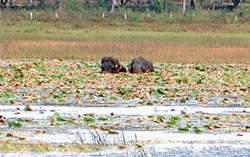 <p>The tuskers, which had entered Belur taluk via Arsikere, were becoming intolerable as they are damaging the standing crops in the region and terrorising farmers. They were spotted at Hebbalu and surrounding villages for the past two days and today at Mudigere taluk, which is situated just half a km from the State highway near Hassan.<br /><br />Though the Forest department is trying its best to drive back those elephants into its habitat, those animals are evading the department personnel for the last 15 days. The department staff is camping in the area for this purpose. The availability of crops such as sugar cane, jowar and others might be one of the reasons for these wild jumbos to camp here. On Monday, the elephants were seen playing in the water for the whole day thus making the task difficult for the department personnel.<br /><br />Range Forest Officer Chengappa is camping in the area to supervise the operation.<br /></p>