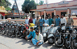 <p>The accused have been identified as Syed Suhail, aged 24 years and resident of Shivajinagar, Bangalore, Akram Pasha alias Pasha, 25, Rajiv Nagar, Mysore and Zubair alias Zabeer, 35, Tanny Road, Bangalore. The first and third accused in the case were previously residing at Basaveshwara Road and Madhwachar Road in K R Mohalla here respectively.<br /><br />The trio fell in police net when they were moving in a suspicious manner near Rajendra Kalamandira on Ramanuja road. Apart from KR, a few among the vehicles recovered were lifted in Devaraja, Lashkar and other police stations here.<br /><br />The police team that cracked the case was led by Inspector B S Srinivas, consisting of Sub-inspectors Niranjanegowda and L Srinivas among others.<br /><br />RI for assault<br /><br />A man convicted of assault has been sentenced to two years rigorous imprisonment by a court here.<br /><br />District Principal and Sessions Court Judge H P Sandesh awarded the jail term, besides imposing a fine of ` 10,000 on Ramegowda alias Jayaramegowda held guilty of assault. A native of Gandhanahalli in Saligrama Police Station’s limits in the district, Ramegowda had attacked Amavasegowda of the same village in 2008. The accused had lent ` 2,000 to the latter and had been forcing him to repay. However, when Amavasegowda failed to clear the loan, Jayaramegowa attacked him with cudgel injuring him seriously. <br /><br />The court also ordered Jayaramegowda to undergo additional imprisonment of six months if he fails to repay the fine amount in lieu there of. Of the fine amount, the court has ordered to pay ` 8,000 to Amavasegowda, according to a release by public prosecutor Sudeep Bangera.<br /><br />Druggist held<br /><br />A druggist has been arrested on the charges of illegal gas refilling on Friday.<br />According to Nazarbad police, Govind who is running a medical store at Vidyanagar here was indulge in the activity when the cops raided the shop. Two LPG cylinders have also been confiscated. Interestingly, it’s for the third time Govind has fell in the net of law. <br /><br />Earlier in 2006 he had been arrested on same charges and nearly 40 cylinders had been seized. The second time he came under scanner was during the raid of Food and Civil Supplies Department.<br /><br />A case has been registered.<br /><br />Chain snatched<br /><br />An elderly woman was relieved of a gold chain worth ` 30,000 here on Friday. Three youth who came triple riding a motorcycle robbed Ramamani Murthy near 16th cross, Gokulam afternoon. She was walking towards her home from a hospital when the incident occurred. <br /><br />Jayalakshmipuram police have registered a case.<br /></p>