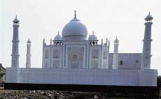 <p>Sometimes they made bigger replicas and customers lapped them up. Then one of them got a brainwave and now it has turned into a reality - a near real-size reproduction of the Taj Mahal at Dholka village, about 40 km from Ahmedabad. Made out of wood board and thermacol, the ‘monument’ can be dismantled and shifted to another venue.<br /><br />Even tabla maestro Ustad Zakir Hussain would have remarked “Wah, Taj!” looking at the structure, reminding one of the famous tea ads on TV. Carla Bruni, wife of French President Nicolas Sarkozy, was eager to have a look at the famed marble structure, which symbolises supreme love. She was immensely pleased having spent time at Taj Mahal at Agra. This model would have left even super model exclaiming ‘magnifique!’ <br /><br />As many as 54 Tazia makers in Bavla town tirelessly worked for four years to create this masterpiece measuring 51 feet in height and 72 feet each in breadth and width. <br /><br />How did the idea come about? “We used to make small tazias. And one of them used to be a small Taj Mahal. And we got number of requests suggesting that we increase its size and make a bigger ones. That is when we thought of getting together and create this magic,” said main architect and tazia maker Ishtiyaq Ali. <br /><br />It was a challenging task. As a first step, the artisans first mobilised raw material and then discussed the architectural plan. It took around four years to make the ‘monument’ at a cost of about Rs 95 lakh. “We set up a mini workshop just near the site, where the Taj erected now. We worked meticulously since the foundation of the Taj was important,” said Rizwan. The artisans mobilised funds from their own community to fulfill their dream.<br /><br />As they worked on the project, they realised that it could be turned into a <br />commercial venture. They decided to go in for a dismountable version. “It could be dismantled loaded in about 35 trucks and shifted to another place where it can be set up again. As of now, we are considering it as a social service. But, we are not averse to shifting it to other places provided there was response from the people,” says Ishtiaq.<br /><br />The marvellous structure is already drawing a huge crowd. People from <br />distant places are flocking to Bavla to witness the impressive structure. “We came all the way from Nadiad (over 100 km from Bavla),” said Mukesh. “If you cannot afford to go to Agra, may be you can come here and look at this monument,” remarked a Bavla resident. Mukesh was elated that the town had become famous because of the Taj's replica. <br />The rave reviews of their creation have left the creators of the model extremely pleased. <br /><br />The creators are looking at registering themselves for some record book. <br />“We are all illiterate and we do not know the process for getting into record books. But we are confident that this movable monument will make it to the record books,” says a confident Ishtiyaq. And given what they have created, their recognition of hard work and creativity are surely something that is being appreciated at least by the common <br />people.</p>
