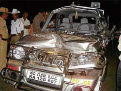 <p>Monappa, who sustained severe head injuries, died in the hospital. He hails from B Shettigeri in South Kodagu. <br /><br />Head Constable Somanna, Constable Vasanth and driver Yogish have sustained severe injuries on head and face. They were rushed to the government hospital for preliminary treatment but were soon shifted to Mysore for further treatment.<br /><br />The vehicle was plying from Madikeri to Bangalore as security to Bopaiah when the accident occurred. The driver in an attempt to save a bike rider ripping from the opposite direction, lost control over the vehicle and hit the timber lorry parked on the roadside. <br /><br />Bopaiah and Appachu Ranjan, MLA immediately took the injured personnel in their vehicles to Kushalnagar hospital.<br /><br />However, while Monappa breathed his last on the way to the hospital, the remaining victims could get immediate treatment.<br /><br />Bopaiah and his wife Kunthi Bopaiah were at the hospital and conveyed their condolence for death of Monappa. Superintendent of Police Manujath Annigeri, DySP Jayaprakash, CPI Basavaraj, SI R G Chennagowda and others visited the hospital.</p>