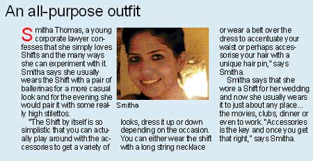 <p>You could tweak a Shift depending on the occasion. It can be converted into anything from a simple day wear to a party outfit. <br /><br />You’d wonder what a Shift looks like. It is a simple, one piece, above the knee dress. The silhouette of the Shift is such that it has a snug fit around the bust and no definition at the waist. <br /><br /></p>.<p>Metrolife spoke to designer Anjali Sharma and asked her to share with us ways to style a Shift. Asked if the Shift was an alien concept in India, Anjali explains that the Shift is no stranger to the world of fashion in India, “It is just that it is never called by its technical name. Bollywood in the 60s was thriving on this silhouette with the top leading actresses wearing their Shift kurtas with churidars, albeit a little tight at the waist,” Anjali observes. <br /><br />Taking more about the Shift, Anjali says that it is a classic silhouette that can be dressed up or down. “The fabric could be very dressy or embellished to have a dressy Shift with coordinated accessories. Or if the dress is simple, a nice neckpiece and the right shoes could get you through a work meeting or a slightly high end lunch,” suggests Anjali. <br /><br />While the West wears a Shift as a dress, paired with the right footwear and a coordinated clutch or even a tote, people in India go a step further with Shifts. “Besides wearing it as a one piece, one can make it very Indian figure friendly by just changing the length to slightly longer and teaming it up with churidars, pair of pants or even cigarette pants,” says Anjali. She thinks the outfit would look great with a stole. Beautiful jewellery and footwear make this a perfect dressy traditional wear.<br /><br />Jewellery definitely enhances a Shift and Anjali observes that longer neckpieces and ear studs make the wearer visually appealing. About footwear, Anjali feels a pair of stilettoes would be great for a stylish dressy look. “Flats work well on a casual day out. The Greek thongs are a great alternative for someone with leaner legs,” she sums up. </p>.<p>Shifting it right <br /><br />* Classic little black sleeveless Shift with beautiful footwear for a cocktail.<br />* Funky cotton printed short shift, tote and flats with minimal jewellery for lunch. <br />* Sheer printed Shift over a bikini on the beach.<br />* Fitted embroidered crystal and beads fabric shift with a pair of sheer crush churidars and a heavy stole for a party. <br /><br /></p>