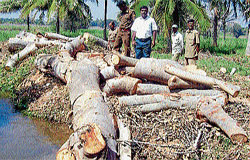 <p>The trees worth ` 50,000 each have been suspected of being cut about three days ago on government land next to the area belonging to Palahalli farmer Padmanabha. Based on information provided by villagers, the trees seized while they were being transported. A police complaint has been lodged against Sathish of P Hosahalli and a case has been registered, said Range Forest Officer Devaraju.<br /><br />He said that action will be taken against the guilty and a report has been submitted to the District Forest Officer. During the last week, teak trees worth ` 35,000 were cut in the land belonging to Maralagaalada Devaraju of the taluk. <br /><br />Devaraju said that apart from trees such as rose, sandalwood and others, permission will be given for chopping within one week if farmers want to cut trees in their land.<br />Forester Khan, Forest guard Sathish and Ramalingu were present.</p>