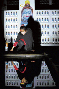 <p>This Bangalore artist has consistently addressed environmental issues centred around water in her often outdoor installations and, more recently, performances.<br /><br />"The Great Unmaking, Living Vessel" became quite a culmination of her effort here, having merged complex aspects of the theme as well as an evocative simplicity, its conceptual foundation declared, on the one hand, and on the other, manifested in immediate recognitions and poetic moods, the need to unmask and demonstrate harmful incongruities of our reality combining with the compulsion to engage not only the audience but also normal life. <br /><br />A critical, distanced approach coincided with an active, integrative one, while open-eyed irony did not exclude loving involvement.<br /><br />The contrasting and kinking of the whole relied on the performative role of the artist who simultaneously presented her ideas metaphorically and intimately embodied them transferring them also literally to others in order to stimulate their reflection as well as emotions. <br /><br />Even though not devoid of inconsistencies or unclear moments, the event was ambitious, largely spectacular and sometimes moving. Inside the pool with water, a low ramp was built on which one could see a massive rectangle wrapped in a black, shiny sheet of synthetic fabric tied by a red ribbon. <br /><br />The artist stood in front of it wearing a heavy, classical make-up that transformed her into a grand, alluring goddess with a third eye, whereas her black costume with a cape mediated the dramatic element of sacred statuary and that of contemporary theatre and popular performances, all this enhanced by the artificial illumination at night.<br /><br />She undid and removed the wrapping to reveal a white shelf stacked with Ganga water bottles whose plastic bodies were shaped into waves and topped by endearingly kitschy images of Shiva whose matted locks ended in yellow caps. <br /><br />If one read the presence of gift consignment initially, it turned into a sarcastic disclosure of the denatured behaviour of our handling of both the elements and the sacred. Pristine and holy, assumedly cleansing, curative and self-regenerating water, now packaged as commercial products serving thirst and ritual, brought to mind its current political manipulations together with international business appropriating organic resources that rightfully used to belong to everyone.<br /><br />The oppressive, contradictory binary of nature and civilizational progress asks for an antidote, and Shamala as a woman-deity-river leaned over the mirror-like calm surface of the pool to face and identify with her clear reflection. <br /><br />This moment of re-entering the pure element being the strongest here, was completed by the gesture of sharing as well as questioning, when Shamala distributed among the spectators water bottles "manufactured by Mother Earth' and 'marketed' by the artist. <br /><br />It was a wonderful desire to extend this sharing of intellect and feelings to random people on the road, even if they responded only on the religious plane. Most of those watching the performance, however, did not notice what was happening then. Also, except for the lyrical quotations from Ujjwala Samarth, the verbal explanation through a microphone was perhaps unnecessary, since it translated the sufficiently suggestive atmosphere into literal terms. <br /></p>