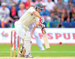 <p>At the close, Australia had reached 249 for one in reply to England's 435 all out with Ponting on 100 and Katich on 104. <br /><br />Ponting, who became only the fourth player to score 11,000 Test runs, scrambled a single to reach his 38th Test hundred off the penultimate ball of the day. Katich's painstaking innings, his eighth Test century, lasted nearly 4-1/2 hours. <br />England captain Andrew Strauss rotated his bowlers, adjusted his fields and tried every ploy he could think of but was denied a breakthrough by the combination of a slow pitch and the skill and unremitting concentration of the two Australians. <br /><br />Andrew Flintoff, returning to the team after a knee operation, took the only wicket to fall during a magnificent six-over spell immediately after lunch. <br /><br />Australia opener Phillip Hughes, who scored 415 runs at 69.16 in his debut series in South Africa this year, gave a glimpse of his penchant for the unorthodox by slashing four boundaries through the off-side before lunch. <br /><br />After the interval Strauss threw the ball to Flintoff and the big all-rounder responded by charging in from around the wicket from the River end and bowling four bouncers in his opening over. <br /><br />Difficult chance<br /><br />He regularly exceeded 145km an hour, beat Hughes several times outside the off-stump and dropped Katich on 10 from a difficult return chance low to his right hand. <br /><br />Flintoff was finally rewarded when Hughes, who had scored only eight runs in 24 deliveries after lunch to reach 36, edged a catch to wicketkeeper Matt Prior who took a fine catch low to his right. <br /><br />Graeme Swann, whose breezy 47 not out from 40 balls in the morning session helped push England beyond 400, bowled five maiden overs in a row from the Cathedral Road end. <br /><br />But the Australian batsmen resolutely refused to take any chances with Katich content to work the ball both sides of the pitch and Ponting pushing it for singles with the occasional swift-footed pull. <br /><br />James Anderson failed to get the ball to swing, Monty Panesar's left-arm spin proved innocuous and fast bowler Stuart Broad left the field for treatment on a calf strain. <br />At the start of the day England added 99 in 16.5 overs after resuming on 336 for seven. <br />Swann added 68 for the ninth wicket with James Anderson (26) and looked set to reach his second test half-century when Monty Panesar was caught at slip by Ponting off off-spinner Nathan Hauritz for four.</p>.<p>Score Board</p>.<p>ENGLAND (I innings, O/n: 336/7):<br /><br />Strauss c Clarke b Johnson 30<br />Cook c Hussey b Hilfenhaus 10<br />Bopara c Hughes b Johnson 35<br />Pietersen c Katich b Hauritz 69<br />C’wood c Haddin b Hilfenhaus 64<br />Prior b Siddle 56<br />Flintoff b Siddle 37<br />Anderson c Hussey b Hauritz 26<br />Broad b Johnson 19<br />Swann (not out) 47<br />Panesar c Ponting b Hauritz 4<br />Extras (B-13, LB-11, NB-12, W-2) 38<br />Total (all out, 106.5 overs) 435<br />Fall of wickets: 1-21, 2-67, 3-90, 4-228, 5-241, 6-327, 7-329, 8-355, 9-423. <br />Bowling: Johnson 22-2-87-3, Hilfenhaus 27-5-77-2, Siddle 27-3-121-2, Hauritz 23.5-1-95-3, Clarke 5-0-20-0, Katich 2-0-11-0.<br /><br />AUSTRALIA (I Innings):<br /><br />Hughes c Prior b Flintoff 36<br />Katich (batting) 104<br />Ponting (batting) 100<br />Extras (LB-6, W-1, NB-2) 9 <br />Total (for 1 wkt, 71 overs) 249<br />Fall of wicket: 1-60.<br />Bowling: James Anderson 13-1-57-0, Stuart Broad 12-1-58-0, Graeme Swann 20-7-49-0, Andrew Flintoff 15-3-48-1, Monty Panesar 11-2-31-0.</p>