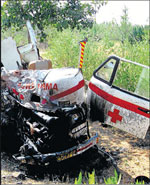 <p>The accident occurred as the driver of a private bus, in his attempt to overtake a vehicle, hit the ambulance head-on. The ambulance was carrying the body of Gangamma from Bangalore. The deceased Maheshwari Bai (45) is the daughter; and Jayashree (35), Shankar and Umesh (both 20) are the grandchildren of Gangamma. All of them hailed from Aland taluk in Gulbarga district. The ambulance driver Adiveppa (24) was also killed in the accident, police said.<br /><br />Gangamma was brought to Bangalore for the treatment of her heart problem. She did not respond to the treatment and died in the hospital. Her body was being shifted in the ambulance to her hometown for the last rites. <br /><br />The impact of the collision was such that the ambulance was reduced to a heap of metal.</p>