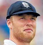 <p> Andrew Flintoff’s participation in the rest of the Ashes series looks doubtful as he awaits the results of a scan on his right knee that is likely to rule him out of this week’s Lord’s Test and possibly beyond.<br /><br />Flintoff, who has been bowling only since June 11 after injuring the same knee playing in the Indian Premier League in April, twisted the joint in the field during the draw with Australia in Cardiff and now faces renewed speculation about his future.<br /><br />Team officials insisted the scan was merely precautionary but the addition of Steve Harmison to an enlarged 14-man squad did little to dampen fears that the latest in a long line of niggles could rule Flintoff out for the summer. “Andrew is experiencing soreness and swelling in the knee which he twisted while in the field and he will be reassessed by the medical staff over the next 48 hours,” Geoff Miller, the national selector, was quoted as saying in the Guardian Tuesday.<br /><br />“It’s not the pain he had before when he had his real problems with the knee — it’s new pain. We won’t rush it. We regard Andrew too highly to do that. We know how much passion he has to play for England and in the Ashes so we would not rush that situation.”<br /><br />England head coach Andy Flower, however, sounded optimistic about Flintoff’s availibility. “He saw the surgeon that operated on his knee," Flower told a news conference on Tuesday. "His surgeon was quite optimistic about him playing in this (second Test) game. He won't bowl today but he will have a bat and he will have a bowl tomorrow. We'll assess it tomorrow and make a decision then." <br /><br />Flintoff has endured four operations on his left ankle and also suffered hip and shoulder injuries. Since his debut in 1998 he has missed 62 of England's 138 Tests. <br /><br />Flower said the selectors were always concerned about Flintoff's fitness because of his injury record. "He seems vulnerable a lot of the time, so we can't get away from that, but he's a hell of a player and we want him in our side if he's fit," he said.<br /></p>