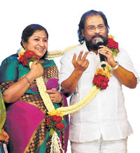 <p>And as one entered Palace Grounds, it was evident that the name Yesudas holds a place of great love and respect in the heart of all music lovers. The occasion was to celebrate the singer’s 50th year in the Kannada film industry and also his 71st birthday. The charity event Hridaya Raaga, was hugely attended and people kept pouring in many hours after the programme had started.<br /><br />The programme began with KJ Yesudas speaking a bit about the role of music in his life. “My father always knew that my future was in music and always supported me in this line,” he said. This was followed by him singing the song Tu Tu Tu Bedapa which he dedicated to Dr Rajkumar. The audience cheered and clapped as he finished the song. <br /><br />Soon director K S L Swamy, took the stage and spoke about Yesudas’s association with the movie Malaya Marutha. “I used to sit and listen to him practice for hours while we were creating the music for the movie,” he said. <br /><br />The next song for the day was the popular Yellellu Sangethave, Yellellu Saundaryave which had everyone in a trance and many even singing along. <br /><br />Singer Srinivas Murthy, sang the song Karunalathaye after which the event got a new twist as the famous musician Ilayaraja walked in. Everyone stood up to give him an ovation as he walked to the stage. “I was born in Bangalore and my mother is here too. I feel if you ever have any tension in life you should just listen to music,” he said talking to the crowd. “We should use music in the right manner and it is our fault that we don’t. We should select the sounds we listen to,” he said. He then honoured Yesudas by putting a Mysore Pet on his head. <br /><br />The rest of the evening saw singers like Ajay Warrior who sang one of Yesudas’s song, Sharade Dayetoride alone and then a duet Kavithe ne with Archana Udapa. Also present during the event was Yesudas’s son, Vijay Yesudas who sang the song, Yare Nechuluve. <br /><br />Though the place was crowded, some of the members of the audience were a little disappointed. “I don’t understand Kannada and am disappointed that Yesudas only sang a few songs. I had hoped that he would sing more,” said Lakshmi Murlikrishna, who was sitting in the audience.</p>