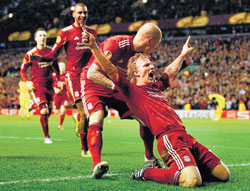 <p>Ajax Amsterdam and Benfica, two other big names in European football, also went through, the Dutch beating Anderlecht 2-0 and the Portuguese winning by the same score at VfB Stuttgart. PSV Eindhoven beat Lille 3-1 to progress from a meeting of Dutch and French league leaders while Russian pair Zenit St Petersburg and Spartak Moscow overcame Swiss opposition in frigid conditions. <br /><br />Germany captain Michael Ballack was among the scorers as Bayer Leverkusen beat Metalist Kharkiv 2-0 to complete a 6-0 aggregate victory over the Ukrainians. <br />Manchester City qualified with a 3-0 win over Aris Salonika, helped by two goals in the first 12 minutes from recent Bosnian signing Edin Dzeko after a goalless first leg. Yaya Toure added the third with a deflected shot. They will face Dynamo Kiev, who beat Besiktas 4-0 with Andriy Shevchenko among the scorers for an emphatic 8-1 aggregate scoreline. <br /><br />Italy's interest ended when Villarreal beat Napoli 2-1 on aggregate. The Spanish side will now meet Leverkusen. <br /><br />In Kenny Dalglish's first European home match as Liverpool manager — the club were banned from Europe during his previous stint — Kuyt headed in from a corner after 86 minutes to secure victory over the Czechs with extra time looming. <br /><br />The first leg had ended goalless in Prague. Liverpool will face Braga, who beat Lech Poznan 2-0 for a 2-1 aggregate win, in the next round. Serb Miralem Sulejmani scored two early goals as four-times European champions Ajax completed a 5-0 win over their Belgian opponents and former UEFA Cup winners Anderlecht. <br /><br />Benfica's Eduardo Salvio and Oscar Cardozo completed a 4-1 aggregate win for former European champions Benfica over Stuttgart. The Portuguese will next play Paris St Germain after the French side went through on away goals against BATE Borisov.<br /><br />Rangers grabbed a stoppage time equaliser through Edu in a 2-2 draw at Sporting that sent them through on away goals.</p>