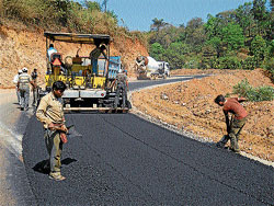 <p>The work on the road from Bhagamandala curve to Madenadu, covering nine km has been completed. By April end, the work will be completed, said Karnataka State Development Corporation Technical advisor Mukunda Reddy. <br /><br />The work on road from Kushalnagar to Sampaje covering 60.2 km is being undertaken at an estimated cost of Rs 101.88 crore. Kushalnagar to Madikeri road was developed last year. After the monsoon, the work on road from Madikeri-Sampaje was undertaken. <br /><br />“About 350 labourers are engaged in the road work. About 14 hitachi, 64 dumpers, four concrete mixers are being used for the upgradation of the road,” said Reddy. <br /><br />He said the road from Madikeri-Sampaje is 25 km. The road is asphalted in three stages. There are 133 minor bridges between Madikeri to Sampaje, which needs to be built. The work on 80 minior bridges was under progress. Retaining walls are being constructed at three places between Jodupala and Sampaje, he informed. <br /><br />He said the road will be maintained by the corporation for three years after its completion. <br /><br />“If one layer of asphaltation is done on the road once in five years, then the road can last for 15 years,” he added. <br /><br />“As Madikeri-Sampaje road is not seven metre wide at many places, we have to construct retaining walls and widen the road while laying the road. There are huge boulders at several places, which needs to be removed. A few places are very congested and have narrow curves. The road is being widened where there are narrow curves,” he added.</p>
