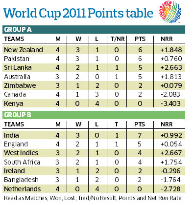 <p>A second routine run chase against another ‘lesser’ team was transformed into a tense affair by a reckless approach that did the most powerful batting line-up of the competition very little credit.<br /><br />India’s bowling had struggled to impose itself on the Netherlands on an admittedly sluggish, spirit-breaking Feroze Shah Kotla pitch on Wednesday, the Dutch improving vastly on previous efforts of 115 and 120 to make a combative 189.<br /><br />Through Virender Sehwag and Sachin Tendulkar, India began as if they had an early evening dinner date, but not even the fall of the two openers, both offering gifts to left-arm spinner Pieter Seelaar playing one stroke too many, brought about a change in attitude. <br /><br />India lost four for 30 in 43 deliveries to slump to 99 for four -- against Ireland three nights back, they were 100 for four -- and while again, they were never in any danger of losing the game, they could have done without triggering artificial excitement.<br /><br />As he had done on Sunday, Yuvraj Singh held the chase together with another sensible hand, conjuring a third straight half-century. By reaching 191 for five, India completed a second consecutive five-wicket win, with 81 deliveries to spare. The big question is what if, against a stronger and more experienced attack, India have to chase a more sizeable target?<br /><br />It might be tempting to wish away the mini-collapse as just one of those things, especially considering the oppositions have been Ireland and the Netherlands respectively and India occasionally tend to play to the level of their opponents, but the ‘what if’ query will gather momentum now that a knockout berth is all but assured.<br /><br />Until that hiccup, Sehwag and Tendulkar put on an absolute exhibition. Matching each other stroke for stroke, Sehwag took on all comers and Tendulkar singled Ryan ten Doeschate out for special treatment. Boundaries flowed in torrents as a noisy audience was treated to spectacular entertainment. Along the way, Tendulkar became the first to reach 2,000 World Cup runs.<br /><br />Seelaar benefited from India’s gung-ho approach, accounting for the openers as well as Yusuf Pathan, promoted to number three, with a delivery that stopped on the batsman. The 23-year-old did little that justified those illustrious scalps, but he sure wasn’t complaining!<br /><br />India weren’t complaining either as the Dutch batsmen threw their hands away when, with a little more application, they could easily have posted a more competitive total Once again, it was left to Zaheer Khan to spare India the blushes, while Piyush Chawla – when will he start repaying the faith? – had another ordinary afternoon after Peter Borren opted to bat first.<br /><br />Like in the last game, Mahendra Singh Dhoni brought his spinners on very early. Pathan appeared in the fourth over and by the seventh, it was off-spin at both ends as Harbhajan Singh too was pressed into action. Neither made any impression on the stodgy Eric Szwarczynski and Wesley Barresi, whose 56-run (92b) stand was the third time in four matches India have allowed an opening association of more than fifty.<br /><br />Chawla finally delivered a googly on target to breach Szwarczynski’s defences, and the golden arm of Yuvraj accounted for Barresi. Tom Cooper led a charmed life, put down twice and escaping being run out, while ten Doeschate was tied up in knots by the lack of pace off the pitch and holed out to long-off as he played his first shot in anger. <br /><br />Having operated only his spinners between overs seven and 29, Dhoni turned to Ashish Nehra – coming in for Munaf Patel – and Zaheer. Both struck paydirt as the Dutch subsided to 127 for seven despite India not being on top of their game, but it is what followed that should worry Dhoni and coach Gary Kirsten.<br /><br />Harbhajan had another wicketless game, Chawla was taken apart by Borren and the batting Power Play yielded 42 runs. Suddenly, the Dutch showed flair and aggression through their captain and medium-pacer Mudassar Bukhari, who amassed 38 in just 23 deliveries for the ninth wicket to lend some meat to their total, as India’s bowling again stood exposed.<br /><br />Zaheer, outstanding as ever, wrapped things up, but can India afford to depend so much on one bowler? And can their batsmen continue to bestow gifts on the opposition?<br /><br />Scoreboard<br />NETHERLANDS<br />Szwarczynski b Chawla 28<br />(42b, 4x4)<br />Barresi lbw Yuvraj 26<br />(58b, 2x4)<br />Cooper c Dhoni b Nehra 29<br />(47b, 2x4)<br />Ten Doeschate c Zaheer b Yuvraj 11<br />(28b, 1x4)<br />Kervezee c Harbhajan b Chawla 11<br />(23b, 1x4)<br />Zuiderent lbw Zaheer 0<br />(6b)<br />de Grooth (run out) 5<br />(11b)<br />Borren c Nehra b Zaheer 38<br />(36b, 3x4, 2x6)<br />Kruger (run out) 8<br />(12b, 1x4)<br />Bukhari b Zaheer 21<br />(18b, 1x4, 2x6)<br />Seelaar (not out) 0<br />(0b)<br />Extras (B-6, LB-3, W-2, NB-1) 12<br />Total (all out, 46.4 overs) 189<br />Fall of wickets: 1-56 (Szwarczynski), 2-64 (Barresi), 3-99 (ten Doeschate), 4-100 (Cooper), 5-101 (Zuiderent), 6-108 (de Grooth), 7-127 (Kervezee), 8-151 (Kruger), 9-189 (Borren).<br />Bowling: Zaheer 6.4-0-20-3, Nehra 5-1-22-1, Pathan 6-1-17-0, Harbhajan 10-1-31-0 (w-2), Chawla 10-0-47-2 (nb-1), Yuvraj 9-1-43-2.<br />Runs during: Power Play 1: 1-10 overs: 38/0; Power Play 2: 11-15 overs: 18/0; Power Play 3 (batting): 42.1-47 overs: 42/2.<br />INDIA<br />Sehwag c Kervezee b Seelaar 39<br />(26b, 5x4, 2x6)<br />Tendulkar c Kruger b Seelaar 27<br />(22b, 6x4)<br />Pathan c & b Seelaar 11<br />(10b, 1x4, 1x6)<br />Gambhir b Bukhari 28<br />(28b, 3x4)<br />Kohli b Borren 12<br />(20b, 2x4)<br />Yuvraj (not out) 51<br />(73b, 7x4)<br />Dhoni (not out) 19<br />(40b, 2x4)<br />Extras (W-4) 4<br />Total (for 5 wkts, 36.3 overs) 191<br />Fall of wickets: 1-69 (Sehwag), 2-80 (Tendulkar), 3-82 (Pathan), 4-99 (Kohli), 5-139 (Gambhir).<br />Bowling: Bukhari 6-